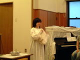 バプテスト教会なのに、滴礼??なんて言わないでね。彼女は妊婦です。本当はどぼんと浸礼で受けたかったのです。