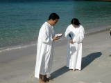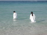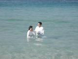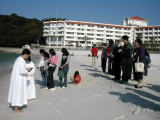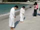 キリスト教会の洗礼式です。白浜では白良浜で行ないます。この日は10月26日でした。寒いのを覚悟していましたが、暖かかったので、助かりました。