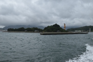 ![]() 写真4 案内図。中央が現在、右が埋め立て前の島の姿(下方が北) |