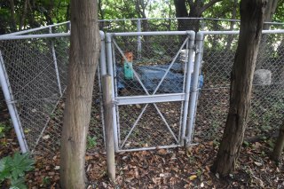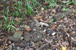 ![]() 写真7 写真6にて。ブルーシートの下に古い煉瓦の遺構が見える |