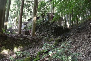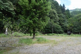 大字江川の中部、小石原(こいしわら)川沿右岸にある。すぐ上流は鮎帰。 2025年再訪。先の民宿等や集会所の建物は撤去されているが、神社の社殿は現存。また谷沿いの農地跡や、最近の地形図で記されている墓地の場所(写真10)、その谷筋の農地跡を確認した。