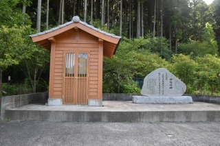 ![]() 写真9 小堂と「郷愁の碑」。堂宇は碑文にある「尊像」が納められたものか |