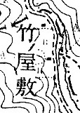 ![]() 写真2 南側の建物付近。左の枝道は林道竹屋敷線 |