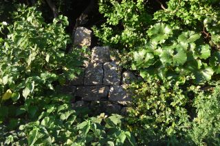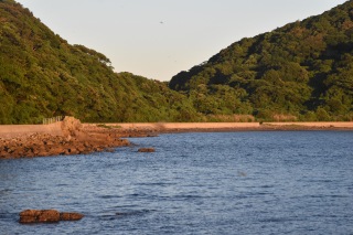 現地では藪のため建物跡は未確認だが、海から陸に通じるスロープの先がその場所であったか。
