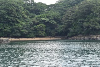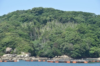 上陸はせず、遊覧船から外観を眺めたのみ。西から南東にかけての航路からは石垣などの遺構は確認できなかったが、島の南東で農地跡の竹藪が確認できた。住居があった場所は不明。