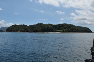 市内浅子町(あさごちょう)の漁港より、南西におよそ1.1qにある島。 資料『シマダス』によると、昭和27年人口22人、同49年7人(県統計年鑑)。島内には水田が開かれ、近年まで稲作が行われていたという。 1960年代の航空写真には、島の北側、突出した陸地の先に船着場のような構造物が見られ、上陸もこの場所より。屋敷跡と農地跡を確認した。頂上には三角点がるのみで何もなし。