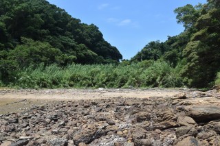 所在:佐世保市高島町(たかしまちょう)(あるいは浅子町(あさごちょう)?) 地形図:楠泊/佐世保 形態:谷沿いに家屋が少数集まる? 標高:約10m 訪問:2025年7月