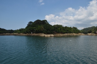 日野町の南西部にある。牽牛崎地区の南東で、鳥ノ巣(とりのす=島の名)の北東。干潮時は岩場が広がり本土側と陸続きになる。地形図では固有の名称は見られない。 訪問は牽牛崎方面より。潮が引いている時間帯に徒歩で渡った。最近の地形図でも島まで破線の道が通じているが、よく踏まれた徒歩道となっている。
