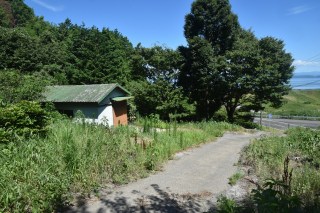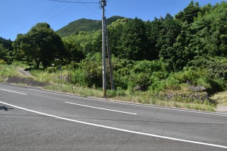 ![]() 写真3 農地跡。道路(現在の県道)の向こうに石垣や往時の道?が見える |
