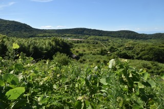 ![]() 写真1 展望所にて。正面奥は平成新山。その前の谷を火砕流が流れ下った |